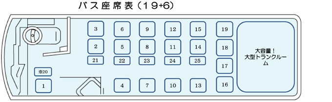 | 定員 | 25名(正座席19名+補助席6名) | ||||||||||||||||