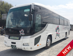 | 最大27名乗車可能。 座席はワイドシートとなっており、ゆったり広々とご乗車することができます。貫通式大型トランクが2スパンありますので、トランクケースなど大きな荷物がある場合でも安心してご利用いただけます。 また、運転士の注意力モニター・車線逸脱警報・横滑り防止・ふらつき注意警報など最新のセーフティシステムが装備されています。 快適な旅をご提供させていただきますので、団体旅行や社員旅行・研修旅行等でぜひご利用ください |